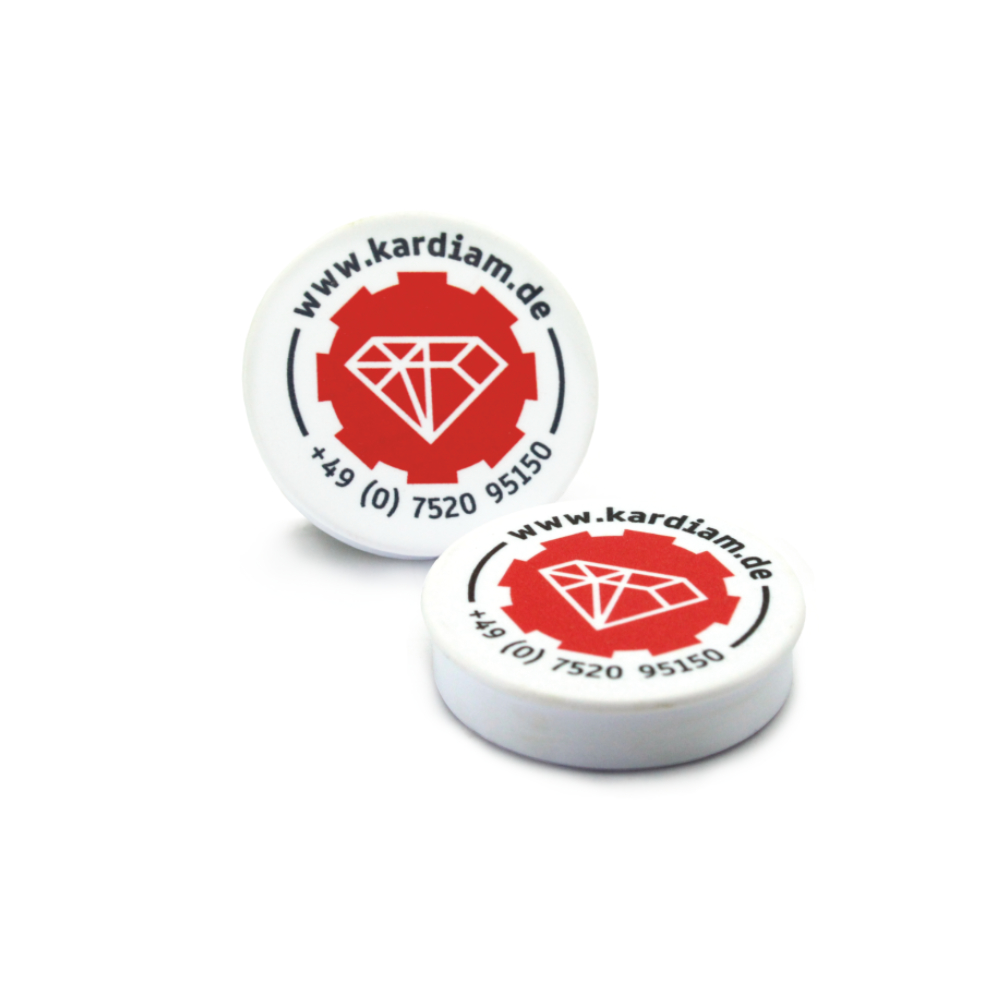KARDIAM Magnet (set of 2) Round, 36 mm diameter, strong holding power A must-have for any pinboard! WHITE with KARDIAM print